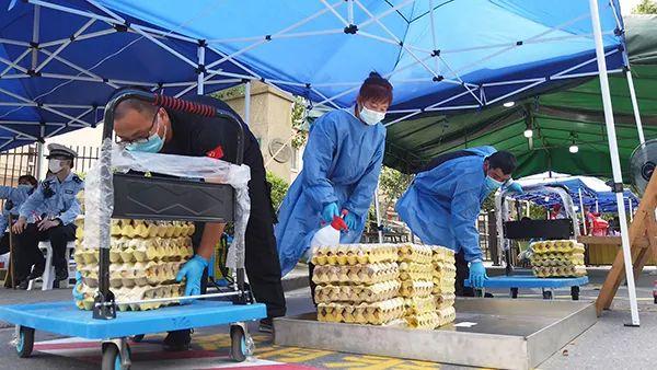 一份份包装好的蔬菜、鸡蛋、品牌肉被无打仗式送进了小区。小区内,一套“平价菜”无打仗式预定配送流程也应运而生。天全国午,自愿者们会在每个楼栋的微信群里收集居民的买菜需求信息,没有智妙手机的老年人大概没有进群的居民则由自愿者或楼组长上门询问收集,完成后与浦优配送对接。第二天早晨7时前,生活保障组的自愿者们就忙碌开来,将当天的“平价菜”按楼栋分拣好,再分发到每一幢楼门口,自愿者与楼组长则将“平价菜”送到居民家门口,早上7时30分前,居民们就能拿到自己预定采办的“平价菜”了。