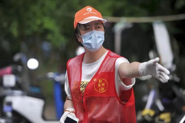 为了确保核酸检测工作有序展开,小区38栋楼的居民分点位、分批次接管采样。小区工作职员和自愿者们承当起了指导和现场保持次序的工作。在检测现场,一个个身穿自愿者马甲的身影往返穿越,手持喇叭,一遍又一遍地提醒居民有序排队。