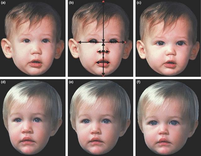 图b,e是原图,cf是偏向“婴儿特征”的PS处置,ad则是反向处置。那末,你感觉哪个更心爱呢?