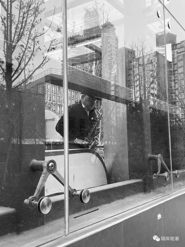 3月22日,上海,一位老人正在吹萨克斯(不插电供图)