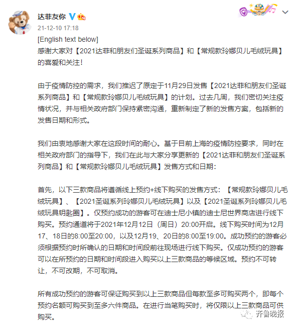 粉丝崔蜜斯暗示,具有一只玲娜贝儿是她的心愿,可是这个商品太难买了一只没有买到,补货时候也迟迟等不到,终究,履历过一次推延后,迪士尼官宣了新的上市时候。