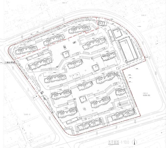 一期:拟建13栋13~15层室第、1栋综合楼、3个街坊站、1个开关站、1栋渣滓紧缩站、1栋渣滓房、1个门卫及1座地下灵活车库(不计容)。