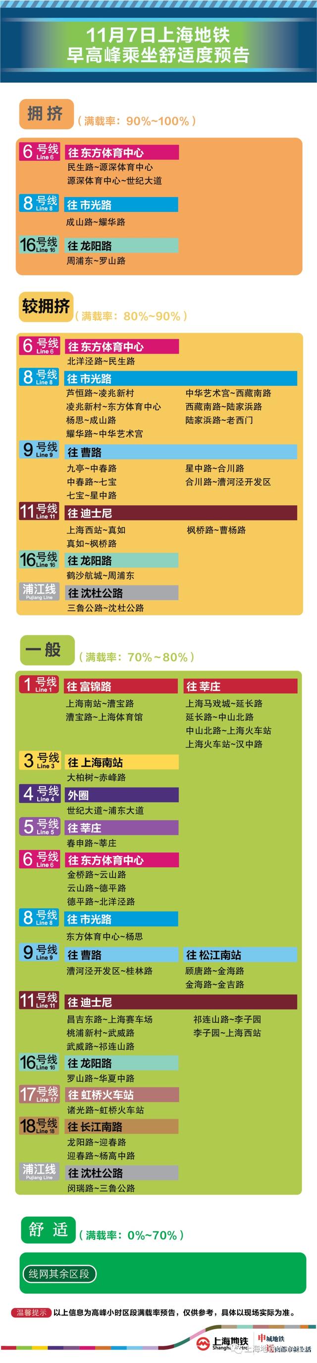 为提升上海地铁早高峰时代出行办事水平,提升乘客乘坐体验,上海地铁向乘客供给乘坐舒适度预告,方便乘客提早做好出行预备。