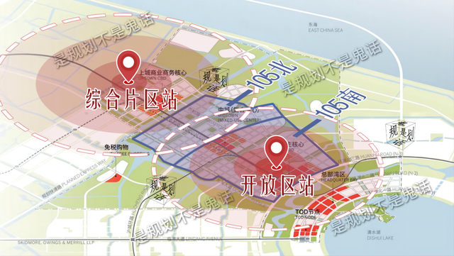 大师在网上能够看到过很多个版本,比以下面两张自媒体常用的图,实在是2019年SOM做的105片区城市设想概念计划的范围,尔后来的计划编制和那时的城市设想还是有些分歧的,早就已经过期了。