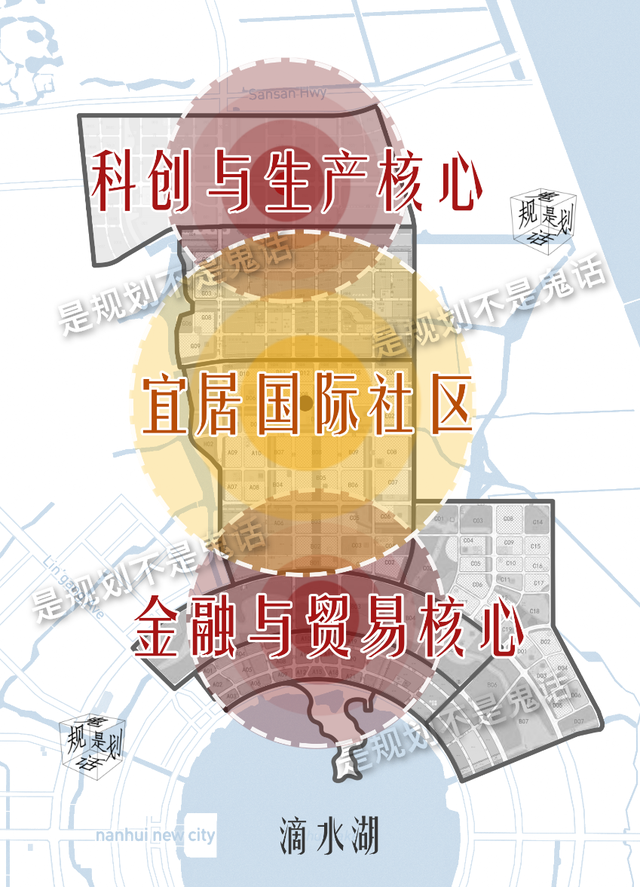 而当我们再次把《临港新片区整体计划》、《滴水湖单元计划》等临港相关计划与《浦东新区整体计划》对照研讨时,发现临港主城区这些片区的功用定位,居然与浦东主城区的计划重点地域的功用定位逐一对应!