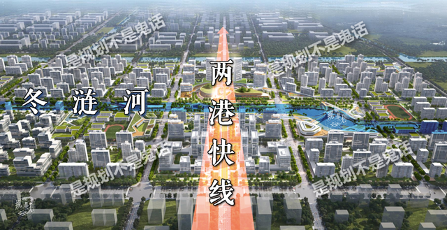 经过一条由两港快线、香柏路、乔柏路组成的“城市中轴”,将七个功用区串联起来。