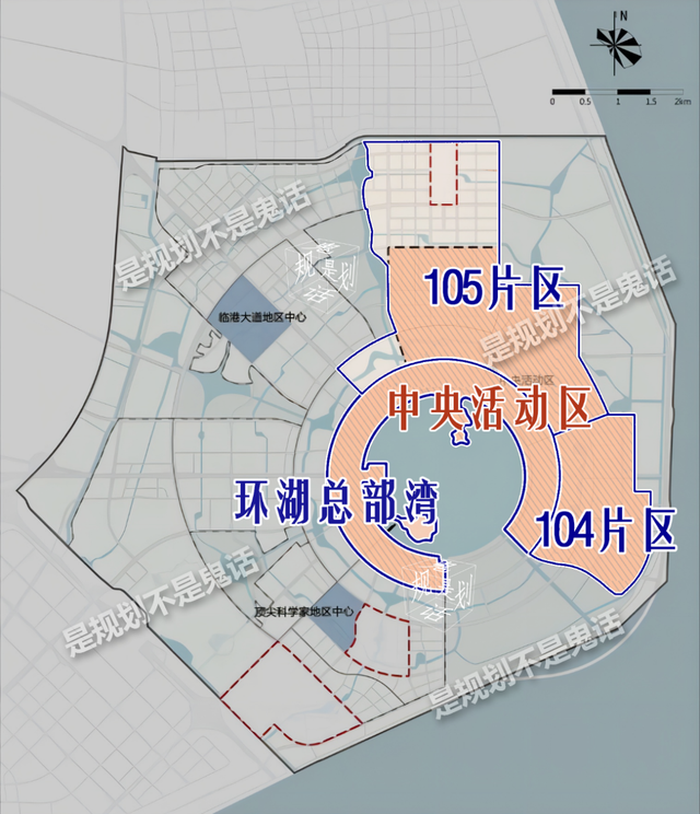 可见,104片区在规规定位上,与世博-前滩分歧。而且临港的中心活动区也是由号称“陆家嘴2.0”的105片区和104片区配合组成的,就跟浦东的陆家嘴和世博-前滩完全分歧。