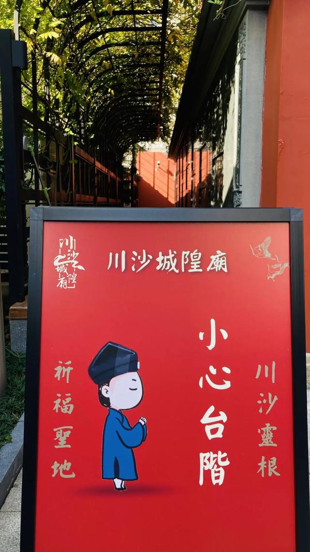 非论何种宗教信仰,途经川沙城隍庙时,冲着恬静的空气和洽景色,都保举进来逛一逛。步入川沙城隍庙的第一感受是亲热,缘由在于这里建造的提醒立牌,Q版小羽士的卡通形象很是心爱。