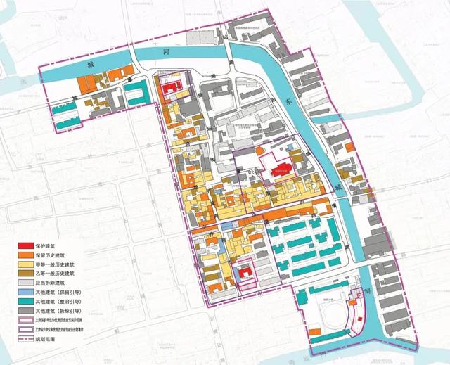 风采区以民国期间典型的江南水乡传统风采为主,在历史的成长中,川沙古城逐步构成以北市街、南市街、西市街与中市街为 “十”字骨架,以传统修建为肌理,以河网水系为依托的十字街环城河空间格式。