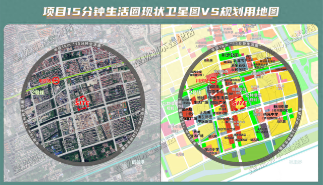 从现状卫星图可以看出,川沙路两侧已经有大量贸易商办会聚,周边高品格社区和教育医疗配套已经相对成熟,但项目周边也仍有很多待开辟地盘。