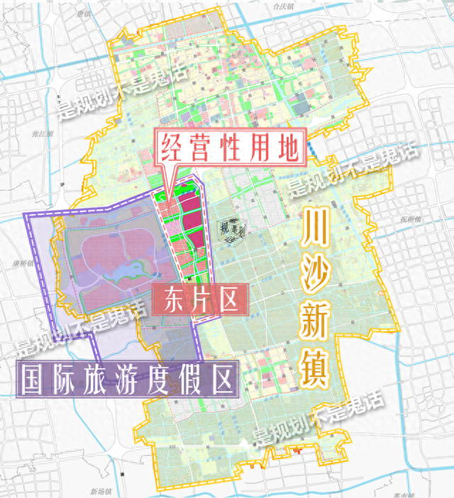 在《川沙2035计划》的计划用舆图中,也可以明显地看到:迪士尼的东面增加了大量的经营性用地
