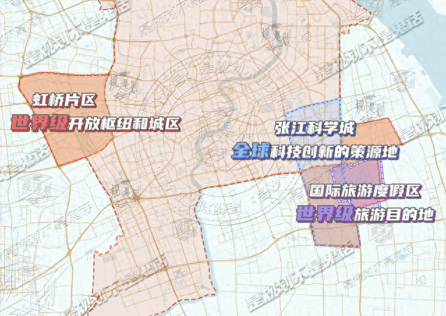 川沙片区内的国际旅游度假区定位为天下级旅游目标地,张江科学城定位为全球科技创新的策源地