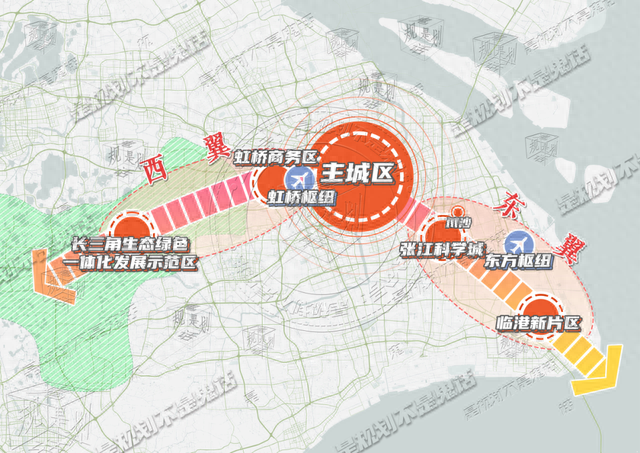 按照《上海“十四五”计划》提出的“中心辐射、两翼齐飞、新城发力、南北转型”的空间新格式。其中西翼是以长三角生态绿色一体化树模区为引领,虹桥关键为锚点,虹桥商务区为要地的功用板块组成,首要承当向内联动长三角的重要职责;东翼则由临港新片区、东方关键及张江科学城配合组成,首要承当链接全球的辐射功用。