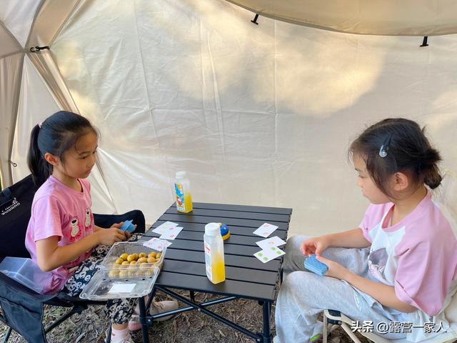 我们这个周末的时辰去得比力早,就是为了抢占一个“风水宝地”,到了以后就火烧眉毛地搭起帐篷。我新买了一个天幕帐篷,间接可以占下接近18个见方的地盘,充足两三家人自在地活动,免受风吹和日晒。