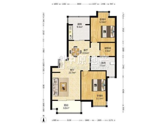 户型:高6层,有电梯,屋子是4楼的,104平,2室2厅1卫,一房朝南一房朝北,南北通透,平装修,满五唯一。