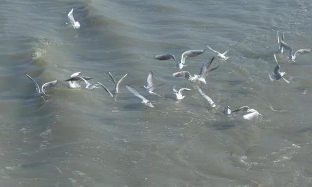 红嘴鸥是相当聪明的,他们晓得只要随着游船才有吃的。